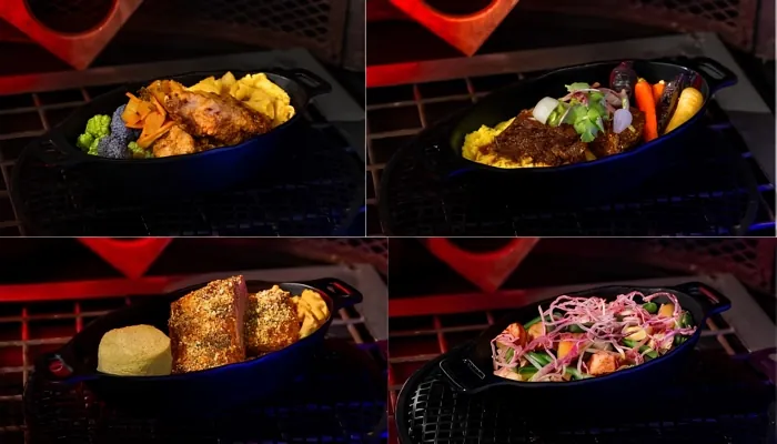 Costillas de cerdo Sweet Puffer con pan de acompañamiento: Costillas de cerdo con salsa barbacoa picante, servidas con macarrones con queso y bizcocho. Suena como uno de los platos más contundentes de la temporada. 🍖