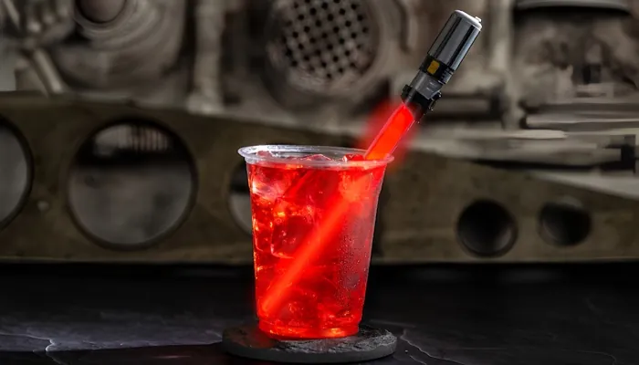- Licor del Señor Sith: Una mezcla de naranja sanguina, jugo de arándano blanco y jugo de lima, servida con un agitador recargable de sable de luz de Darth Vader. También tiene versión con vodka Absolut Citron. Una opción ideal si quieres una bebida temática con un toque más oscuro del lado Sith. ❤️