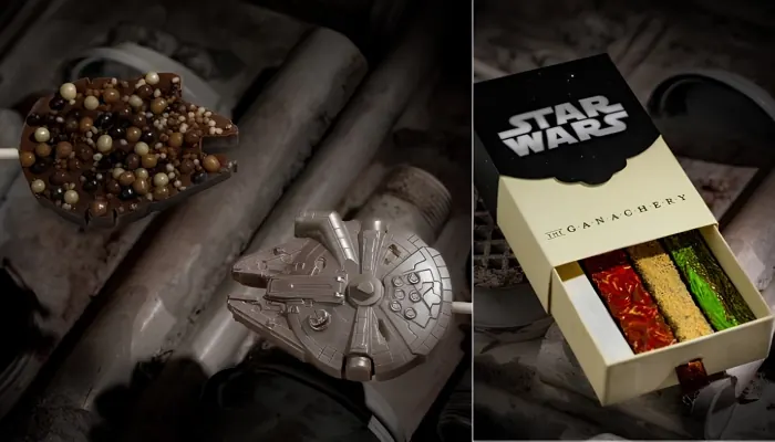 Barras de ganache “Across the Stars”: Barras de ganache inspiradas en distintos planetas de Star Wars, con sabores como maíz y nuez para Kashyyyk, fruta del dragón para Tatooine, cereza picante para Mustafar y menta-lima para Hoth. Una opción muy original y perfecta para quienes aman probar sabores distintos. 🌍